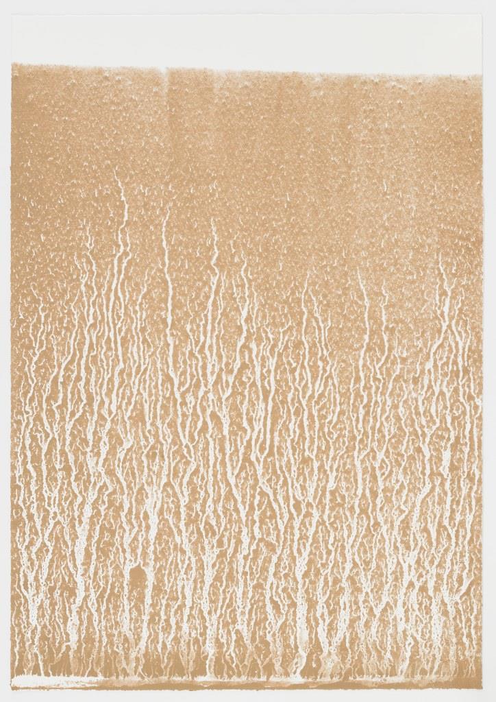 Alongside these new works are a selection of previous prints he has made using carborundum, a type of silicon which is ground down and mixed with water to form a paste. It was famously used by Howard Hodgkin. It was through this medium that Long first embraced colour.