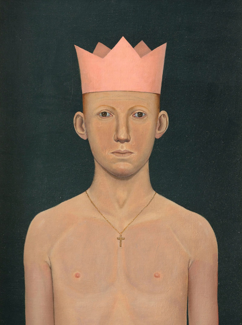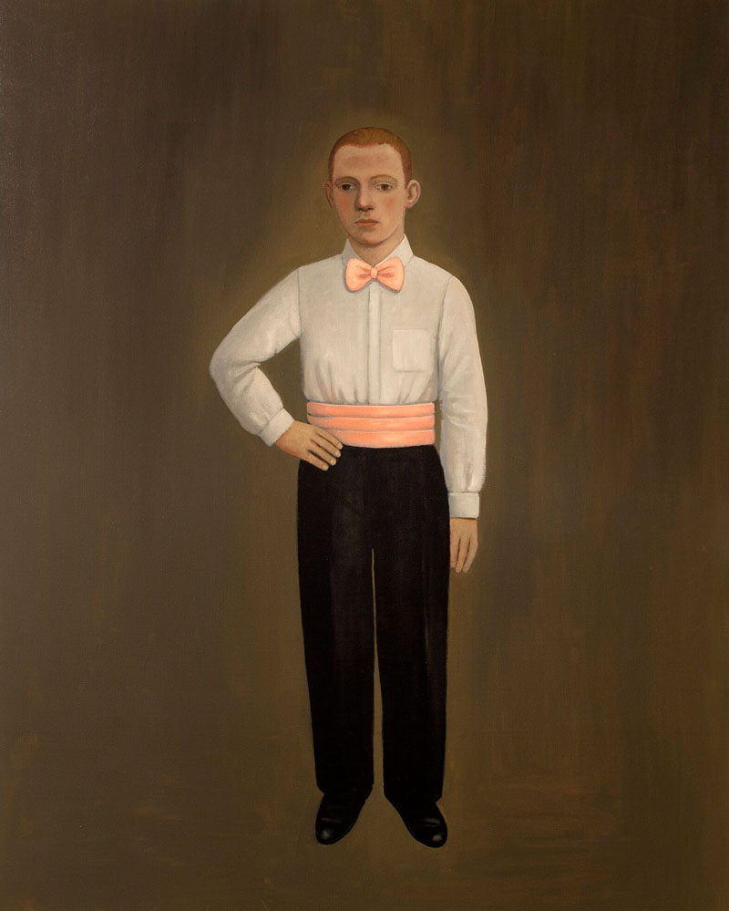 John Kirby will admit that despite his difficult early years and his melancholic disposition, he lives a contented life with his partner and his dog, the last of whom has become a regular feature of recent paintings. His themes are thoughtful, deeply personal with a universal relevance yet are looking increasingly dated. Gender flexibility and ambivalence are subjects talked about constantly today. Homosexuality has long been accepted and celebrated in most aspects of western society. Kirby admits that maybe he has been banging the same drum for too long.
