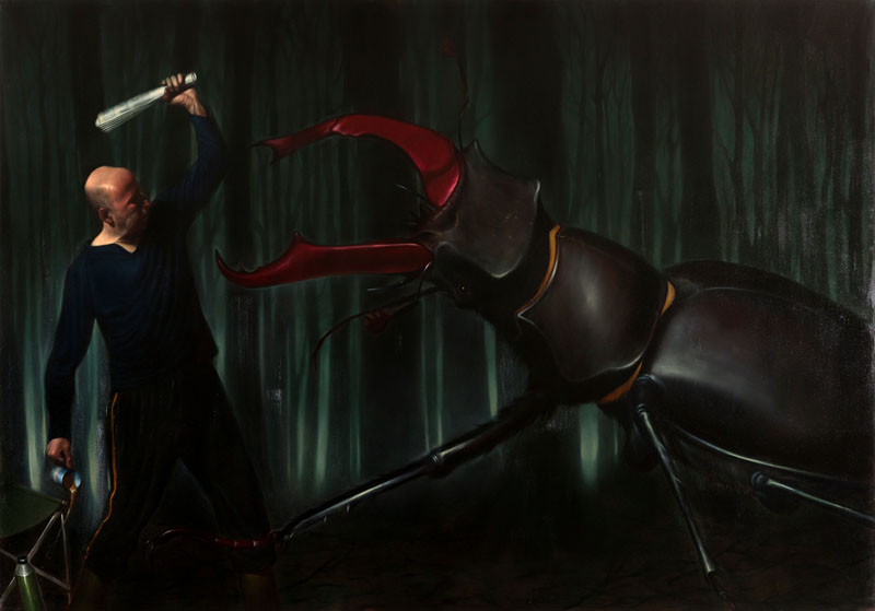 The stag beetle represents the terrors that come from within. Stag beetles aren’t that size obviously and I find insects quite scary. They’re so tiny but they’re quite robotic, they’ve got no cute faces. They’re killing machines a lot of the time. So I’ve always had a fear of giant insects particularly.