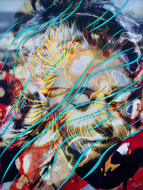 Multimedia contemporary artist Samantha Louise Emery has created a series of 10 portraits celebrating the women who have inspired her throughout her life. Entitled IKONA Mirrored Interior, they are currently on show (and on sale) at London’s Mediaworks.