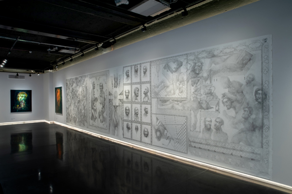 His new exhibition at Unit London entitled Reverence comprises mostly new works that address themes relating to the show’s title: respect, approbation, worship, awe and adoration. It includes the eponymous Reverence, a monumental eleven metre pencil drawing that takes up most of a wall. It’s his 18th solo show in the last decade including New York, Paris, Brussels and his fourth in London.