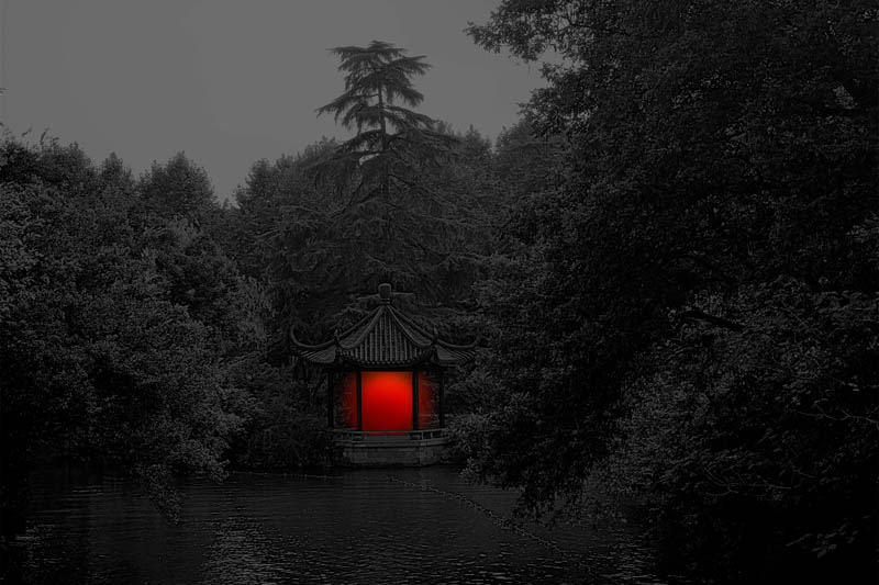 Shen Wei has photographed doorways but the twist here is that he has replaced what was behind them with new post-produced images. The one above features blue, another a red cone. The same can be said of Pavilion, this article’s top shot where the superimposed red mist in the building is a beacon against the rest of the monochrome. “This whole series is taking something very classic and putting them out of context”, he explains. “This is the whole concept of the series.”
