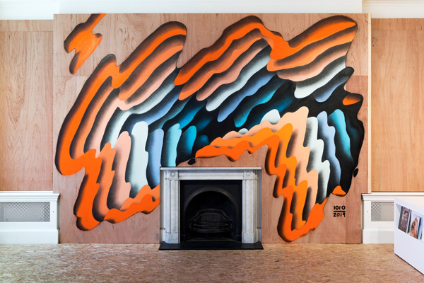 “We are getting more and more used to this sacred white cube where we put the artwork in the middle of the beautiful, white wall whereas when the artist is creating, it’s not necessarily what they had in mind. So the idea is we transform space, so we’ve covered it with wood from floor to ceiling… and the idea is that the artists will come and really fill the space in little by little. On average we’ll have two artists per week, so people can come and see the process and also we invite people to come back. So every two or three weeks will be a good moment to come back when it will be completely different.”