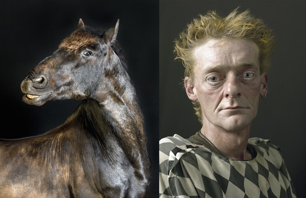 Picasso, the gypsy horse looks like it’s smiling at the camera in a cheeky kind of way. He could come straight out of a fable or a book like Animal Farm. Part of Gonnord’s skill is to capture the look and the attitude. It requires a lot more patience with animals than humans. At first too docile, Gonnord had to introduce a female horse to energise Picasso. On the right, Roland is a German street performer he discovered in Lisbon while working on a project for an institution there. Most of the photographer’s work, in fact, is made for institutions rather than galleries. The detail of the face is quite arresting, prompting thoughts about how his journey in life has ended up where it is. “I’m very sensitive towards people who work on the street because they’re not protected. They try to sell their art but nobody pays attention.”
