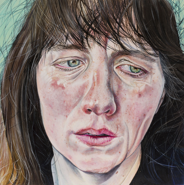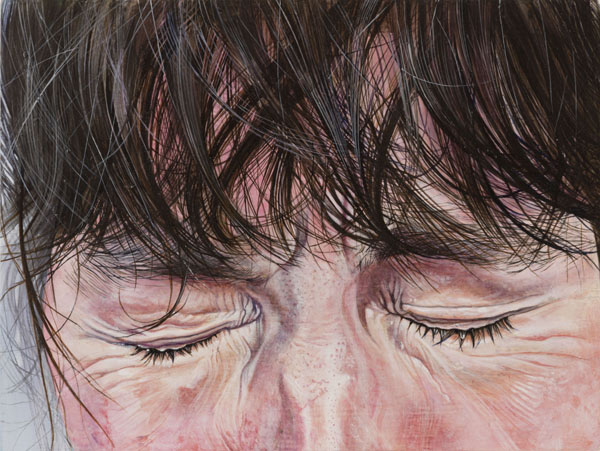 Elsewhere, another son’s portrait, painted before he flees the nest for university, is full of longing by way of the wrench a parent feels as a child is passing from one stage to another. Other images are of children sleeping, away from the maternal gaze. All are expressed in meticulously observed detail. The way she paints human hair is second to none.
