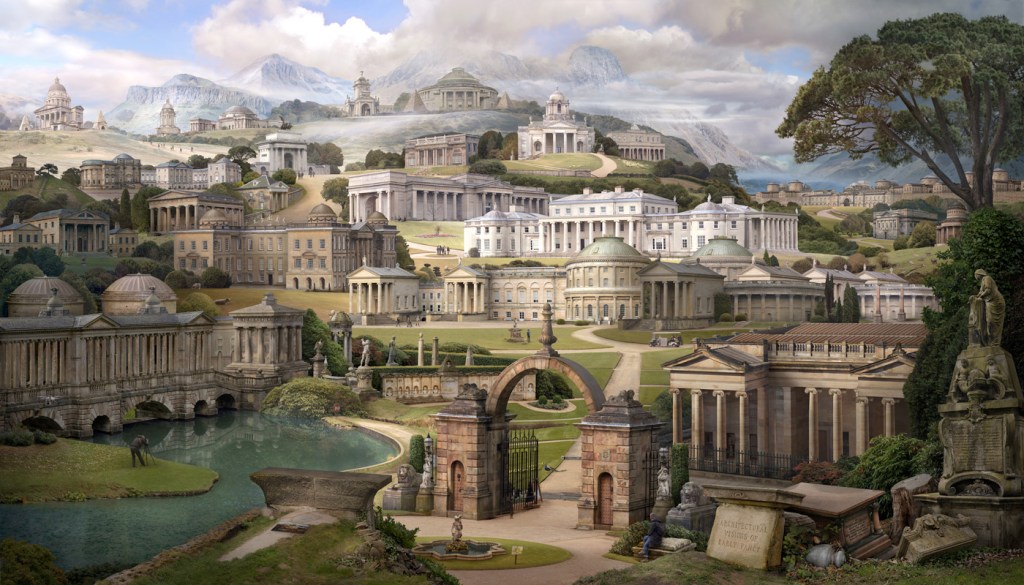 Luckily, his illustrator Joseph Gandy drew them all. Emily Allchurch, the subject of the most recent Considering Art podcast, has used his illustrations as a template for recreating his works as a 21st century digital photographic collage presented as a lightbox. Ingeniously, for the unbuilt ones, she has seamlessly assembled together sections of different neo-classical buildings until they combined to resemble as closely as possible Soane’s intended designs as if they’d been built 200 years ago.