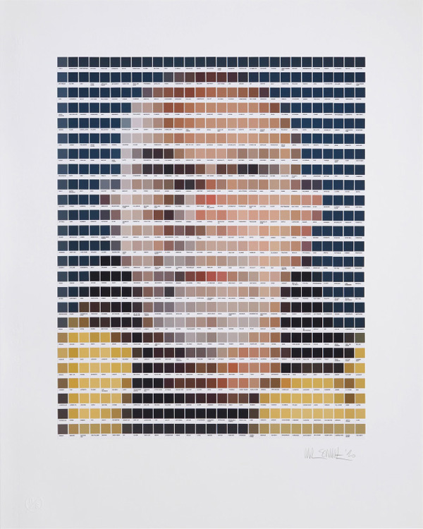 He then replaces the original pixels with coloured swatches he has chosen that are close to the original. The result is a kind of impressionist version of the original artwork redesigned to a new aesthetic.