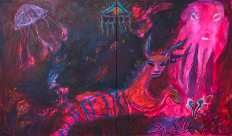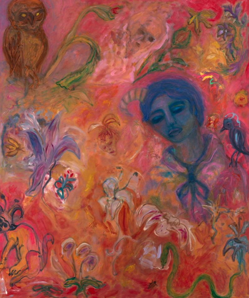 American artist Paige Perkins, now based in England, draws on mythology, fairy tales and symbols to create paintings in which hybrid creatures and ambivalent faces abound. In this episode, she talks about how she chose painting over ballet, how art school in London loosened her style, how regular Jungian analysis has influenced her work, how she aims to visualise her subconscious through her process, how the state of the natural environment concerns her, and about those artists who influence her.