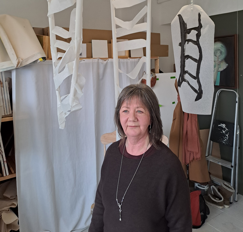 June Nelson paints and draws themes expressing narratives that shape women’s lives. In this episode, she talks about her upbringing in industrial south Wales, studying English before reverting to art, how she has adopted a feminist viewpoint in her work, the influence of both art history and literature in determining her motifs, drawing with smoke for which she has twice been a finalist for the Trinity Buoy Wharf drawing prize, her drawings of egg climmers, her installations on the subjects of flooding and grief, making impossible objects, and the benefits of the Turps Offsite mentoring course.