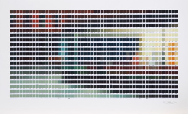 British artist Nick Smith has a unique process. A former interior designer of 11 years, he was used to working with swatches, those thousands of colour variations each with their own name that you find in expensive design books or even as paint charts in your local DIY store. Back in 2011, a friend challenged him to make an artwork from them. He accepted and hasn’t looked back since and that’s only half the story.