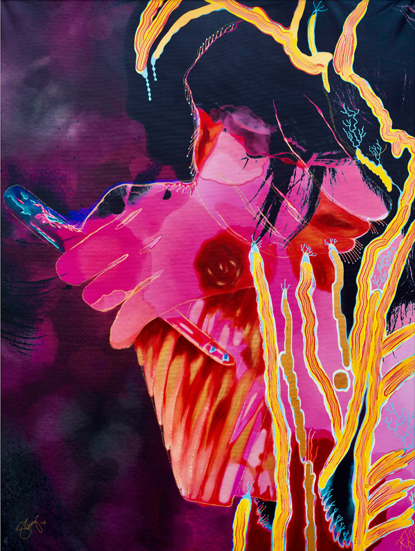 Multimedia contemporary artist Samantha Louise Emery has created a series of 10 portraits celebrating the women who have inspired her throughout her life. Entitled IKONA Mirrored Interior, they are currently on show (and on sale) at London’s Mediaworks.