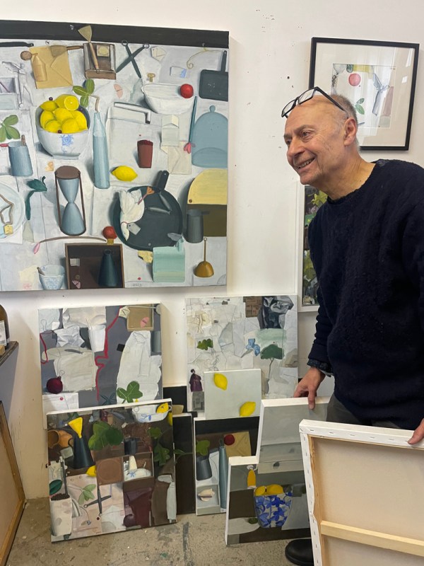 Brian Sayers paints remarkable still life paintings that are often cluttered with all manner of everyday objects and implements. In this episode, he talks about how he got into The Slade art school and meeting Lucian Freud and Francis Bacon, the difficulties of finding a “style”, teaching at Eton College to help earn a living, what influenced his well-known table-top still life works, how he plans them, what they mean to him and in what direction his paintings might be heading.